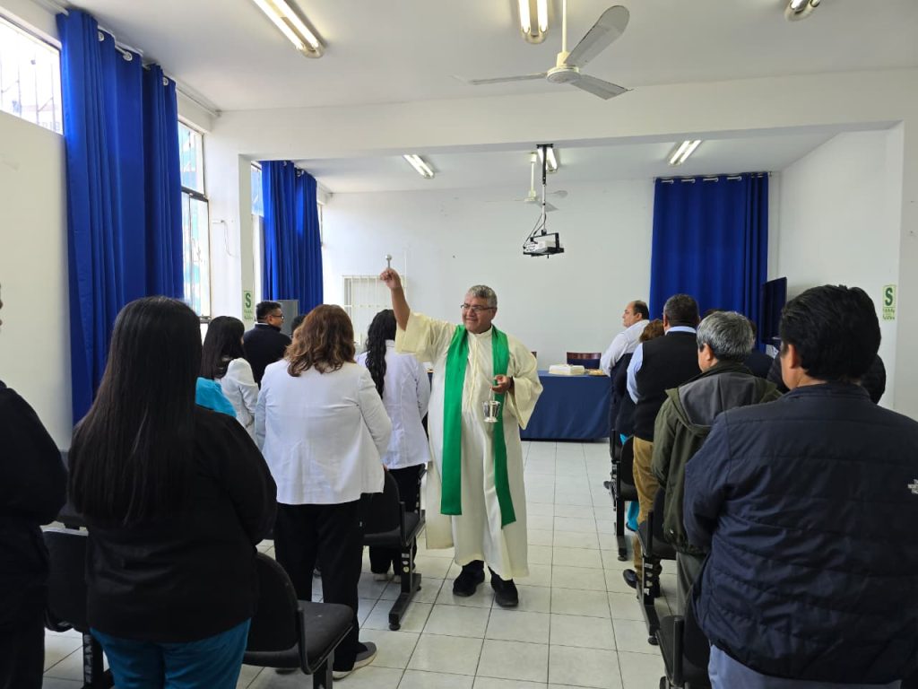 ✅El evento se inició con la participación de la Liturgia de la Palabra a cargo del Rvdo. P. Peter Chau, párroco de Puente Piedra. Asimismo, todos los asistentes recorrieron las instalaciones hasta llegar a la plaza principal donde se procedió a colocar un arreglo floral y hacer un minuto de silencio en el busto de Daniel Alcides Carrión, un joven médico peruano quien se inoculó una bacteria para encontrar la cura para la verruga. |