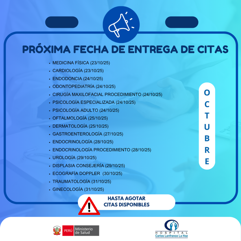 📢 Estimados usuarios les compartimos el listado de la próxima fecha de entrega de citas.