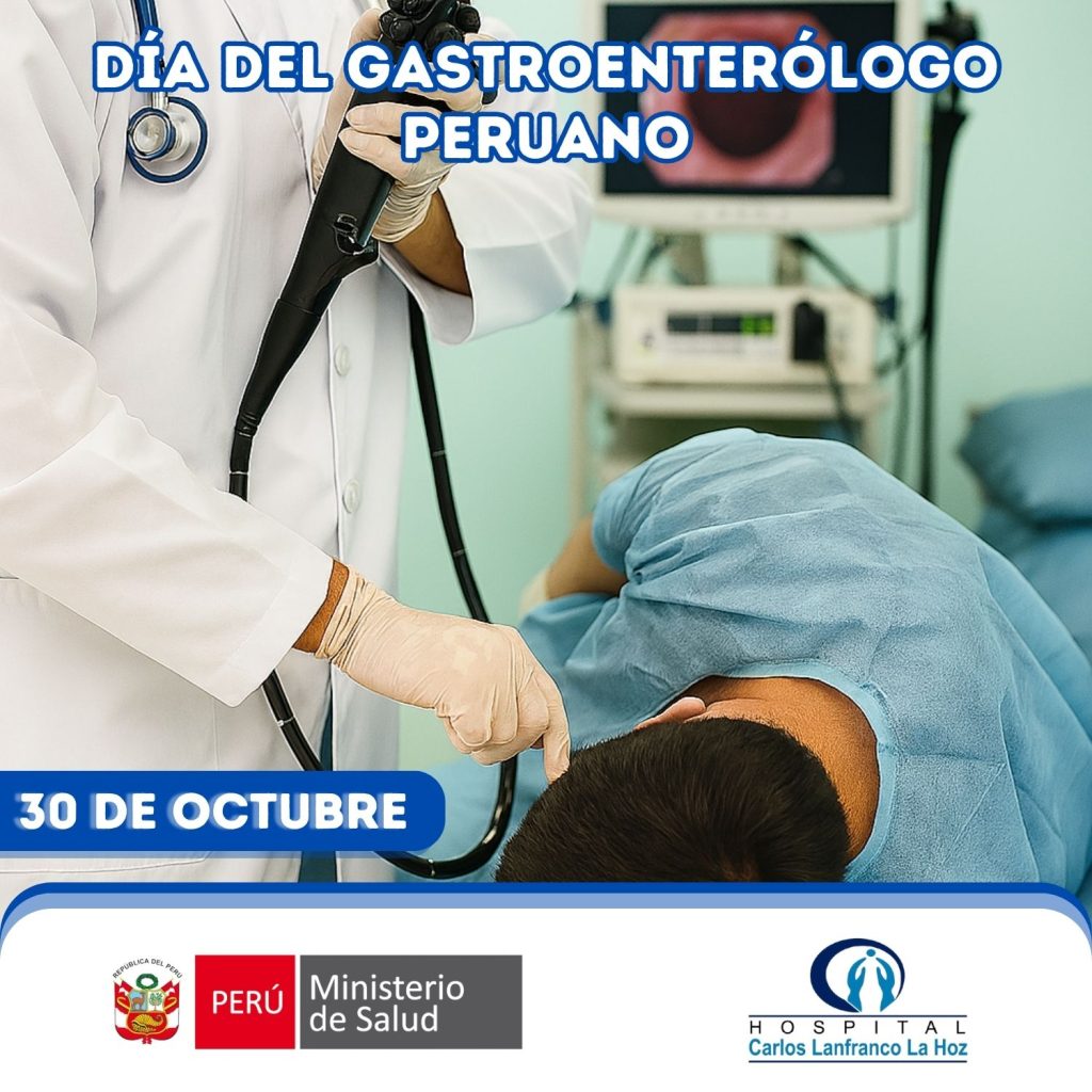 | 🗓 El Hospital Carlos Lanfranco La Hoz, bajo la dirección del Dr. Luis Enrique Ríos Olivos, se une a la conmemoración del Día del Gastroenterólogo Peruano, celebrado cada 30 de octubre. Esta fecha reconoce la importante labor que desempeñan los especialistas dedicados al estudio, diagnóstico, tratamiento y prevención de las enfermedades del sistema digestivo. |