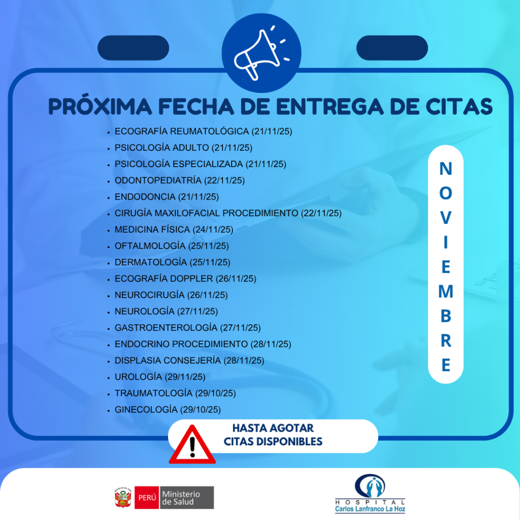📢 Estimados usuarios les compartimos el listado de la próxima fecha de entrega de citas.