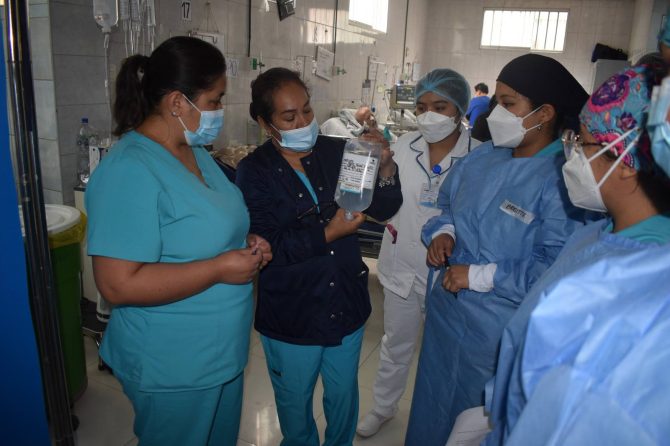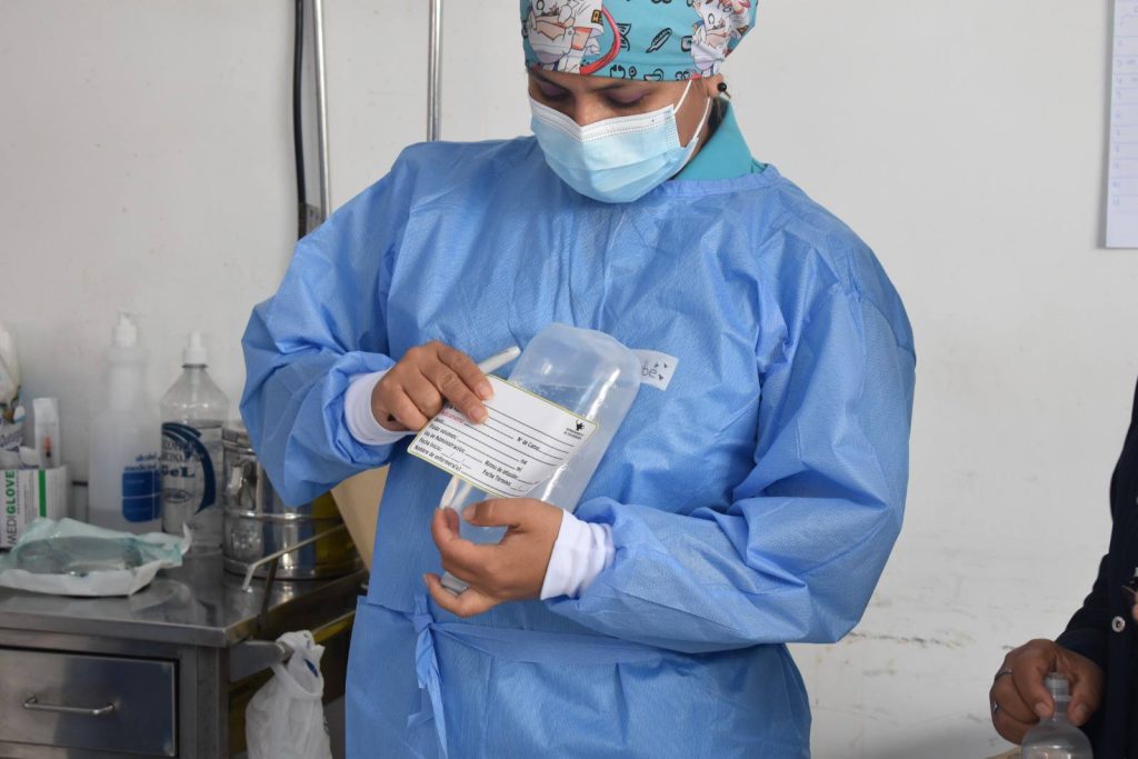 | 📌 El plan consiste en la implementación de etiquetas adhesivas en los empaques de cloruro de sodio utilizados para administrar medicamentos a los pacientes. Esta medida permite identificar de manera más clara y ordenada los tratamientos, además de evitar la contaminación del medicamento, que anteriormente podía producirse por el uso directo del plumón indeleble sobre los envases. |