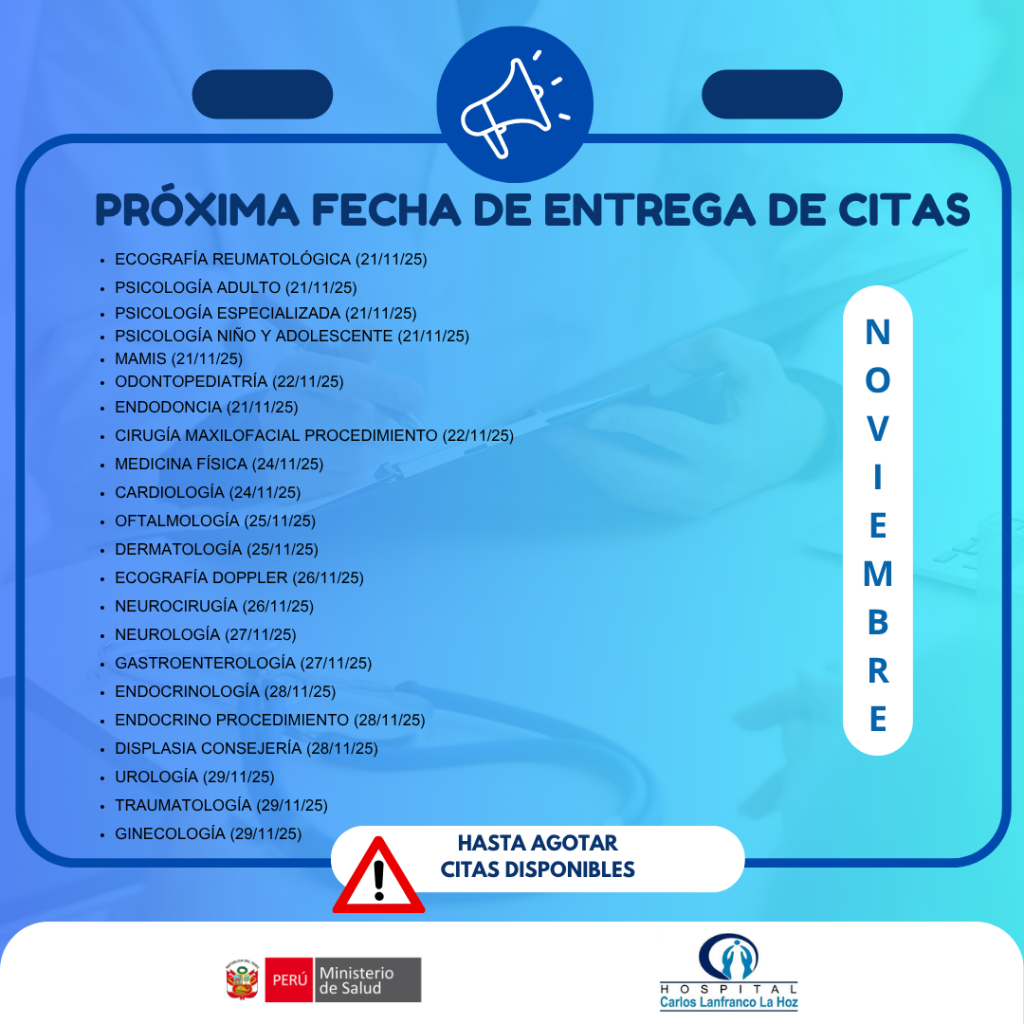 📢 Estimados usuarios les compartimos el listado de la próxima fecha de entrega de citas.