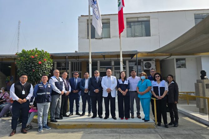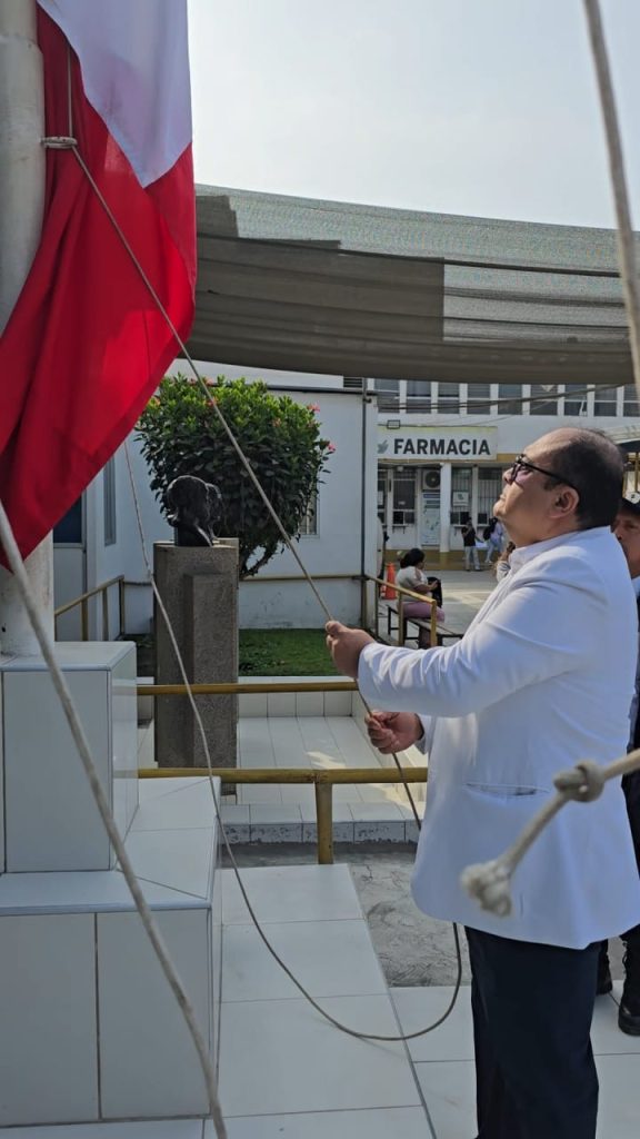| 🇵🇪 El Hospital Carlos Lanfranco La Hoz, realizó el acto de izamiento del Pabellón Nacional, el cual estuvo presidido por el director ejecutivo, Dr. Luis Enrique Ríos Olivos, seguido de la entonación de las sagradas notas del Himno Nacional. |