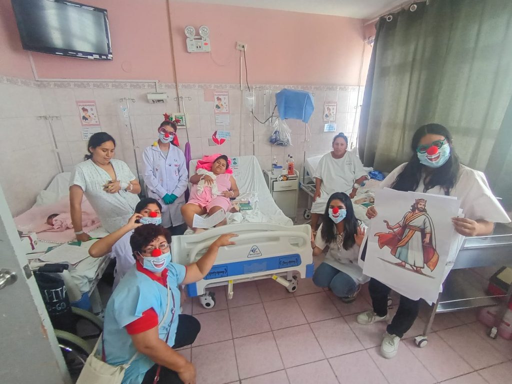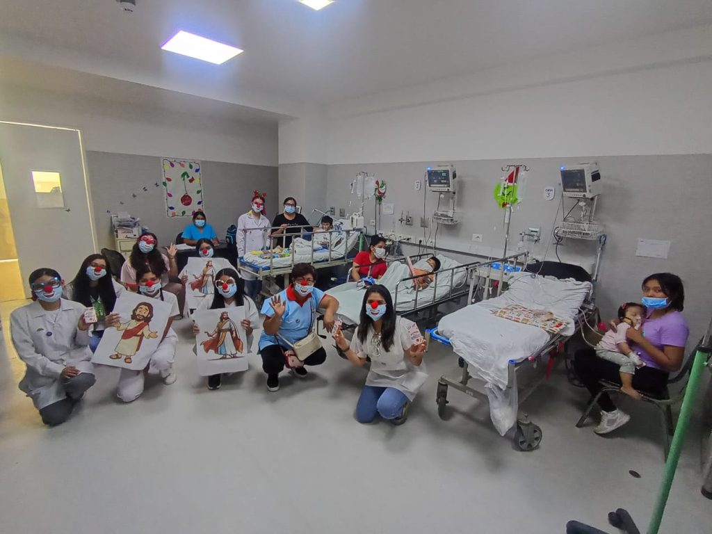 | 🥼El recorrido se le realizó en compañía de jóvenes misioneros quienes pusieron en escena la presentación del Show de la Patrulla Carcajadas, robando sonrisas y aplausos entre nuestros pacientes. |
