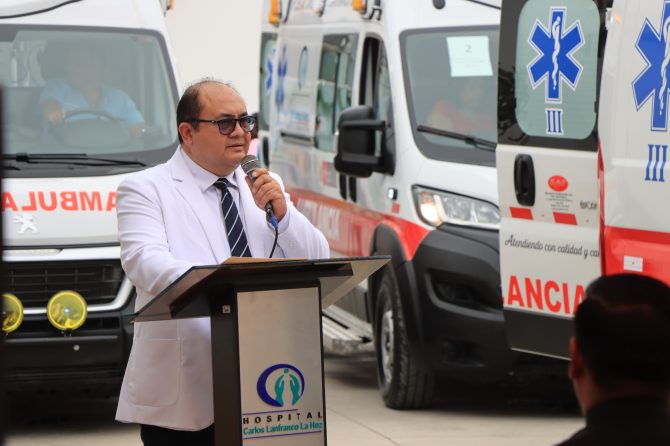 🚑El director ejecutivo del hospital, Dr. Luis Enrique Ríos Olivos, expresó que con la adquisición de las modernas ambulancias, con características de una Unidad de Cuidados Intensivos, se reciben tres unidades de esperanza y de respuesta inmediata ante la emergencia de los pacientes, garantizando su salud y vida.