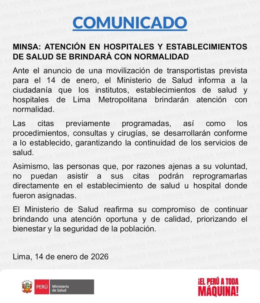 🔴 COMUNICADO | El Ministerio de Salud informa lo siguiente: