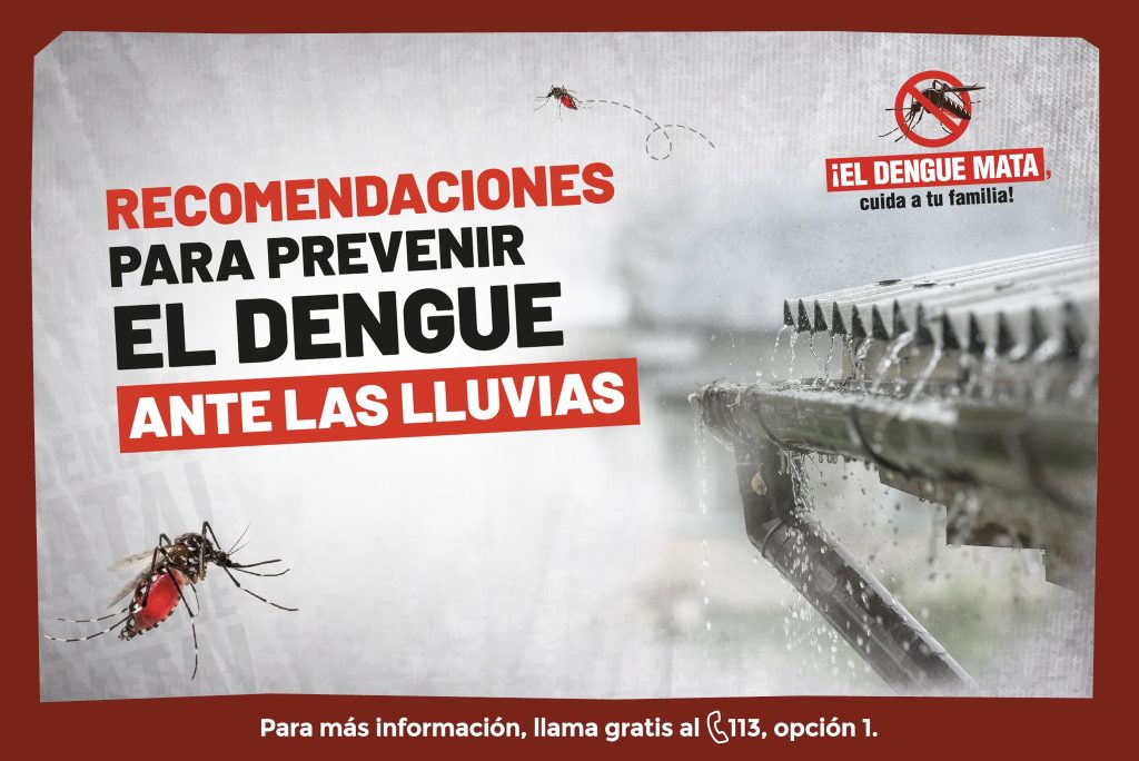 Aprende cómo evitar que el dengue llegue a tu hogar en temporada de lluvias. Para más información llama gratis al 113, opción 1. #ElDengueMata 🚫