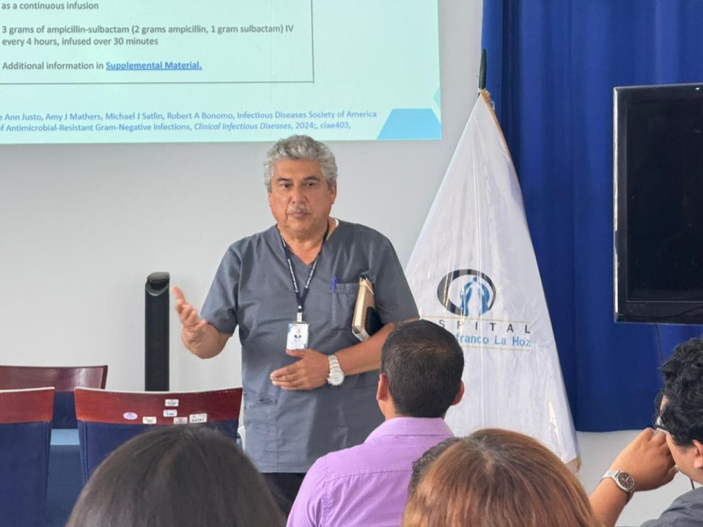 | 👉Por su parte el director ejecutivo, Dr. Luis Enrique Ríos Olivos, destacó la importancia del trabajo articulado del PROA, señalando que “la optimización del uso de antimicrobianos es clave para garantizar la seguridad del paciente y mejorar los resultados en salud”. |