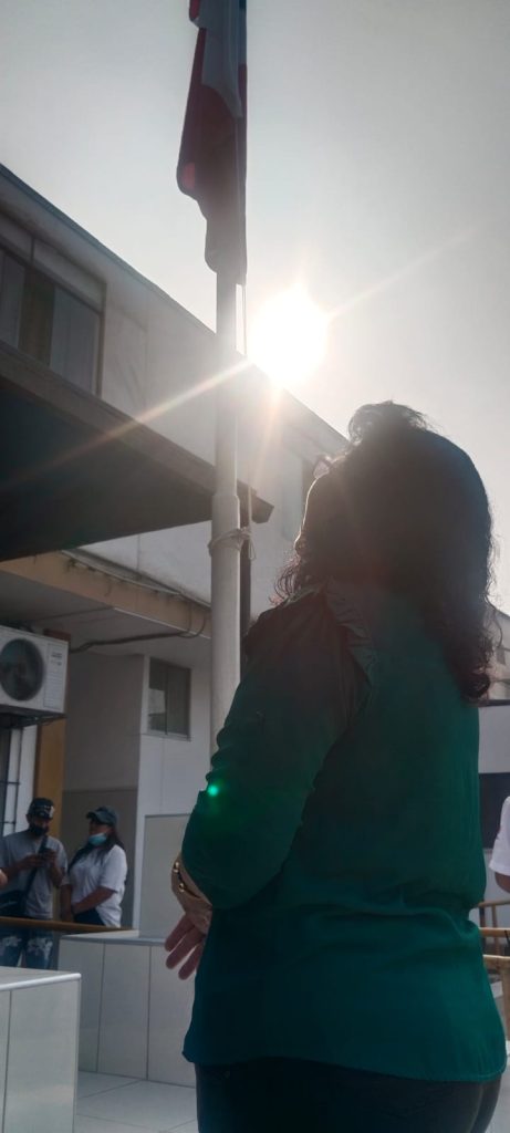 | 🏳️ En esta oportunidad nuestra bicolor fue izada por el Lic. Robert Matías Díaz, mientras que el izamiento de la bandera institucional estuvo a cargo de la Ing. Rosmely Mosqueira Buitrón, jefa de la Unidad de Estadística, Informática y Telecomunicaciones. |