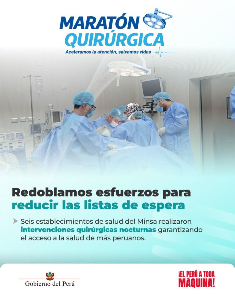 | 🏥 Con la #MaratónQuirúrgica el personal especializado de establecimientos del Minsa realizó jornadas nocturnas de operaciones para reducir las listas de espera y resguardar la salud de nuestra población 🇵🇪. |