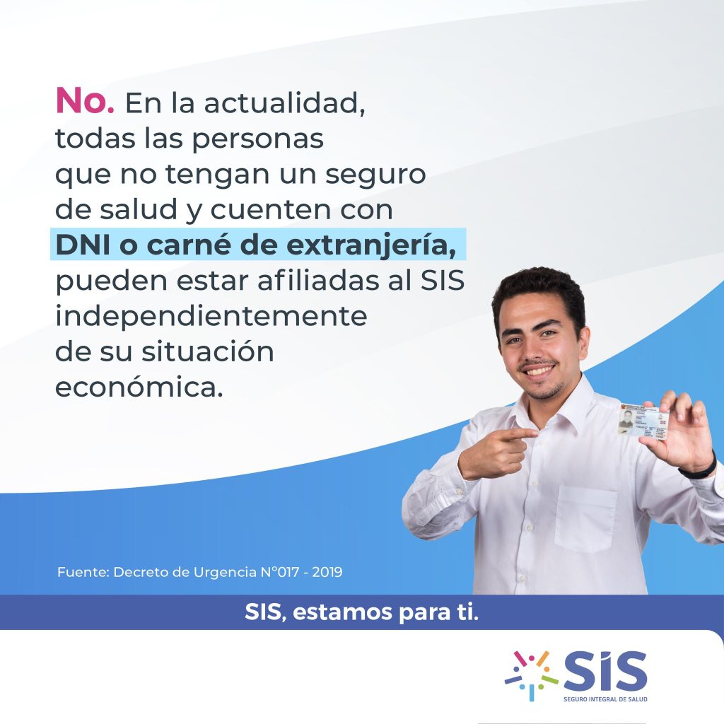 | 👉 En la actualidad, todas las personas que no cuenten con un seguro de salud activo y tengan DNI o carné de extranjería pueden afiliarse al SIS, independientemente de su situación socioeconómica. 🩺🤝 |